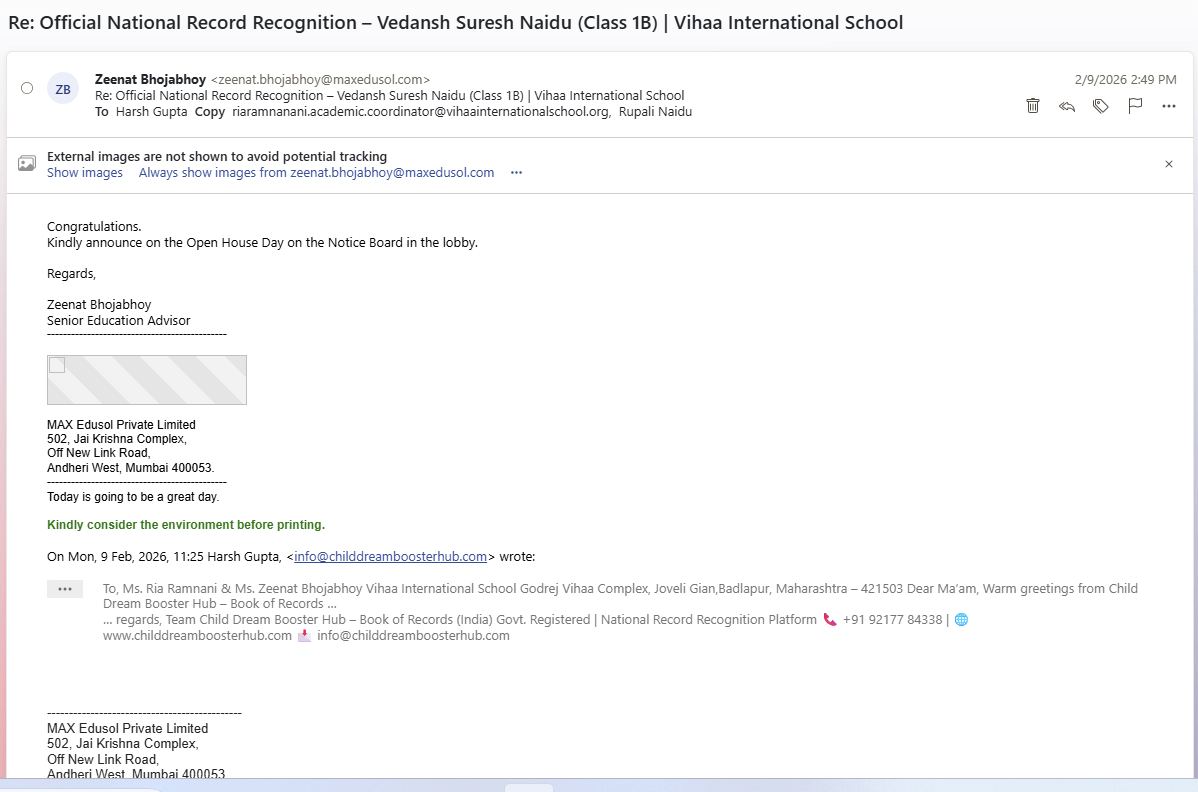 π Proud Moment for Child Dream Booster Hub Book of Records! π